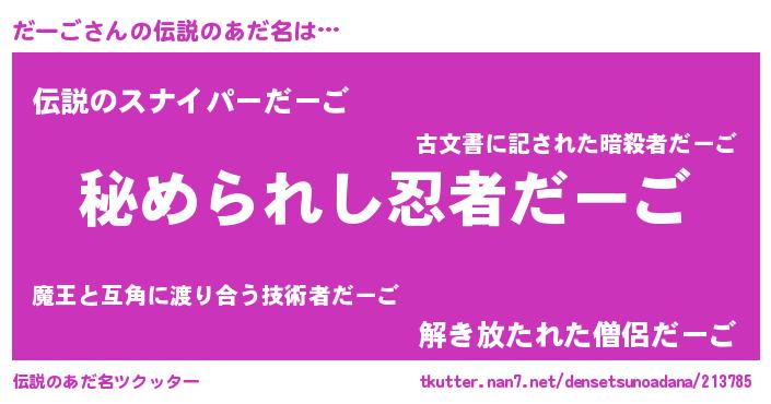 | 男性向けラノベタイトル風あだ名 | 『魔法科高校のだーご』『緋弾のダーゴ』 |