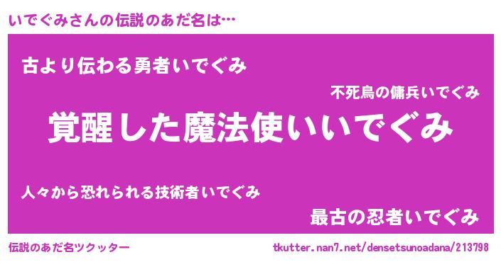 | 男性向けラノベタイトル風あだ名 | 『いでぐみに滅ぼされるだけの簡単なお仕事です』 |