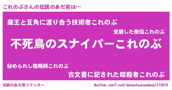 | 女子向けラノベタイトル風あだ名 | 『これのぶ姫と円卓の騎士』 |