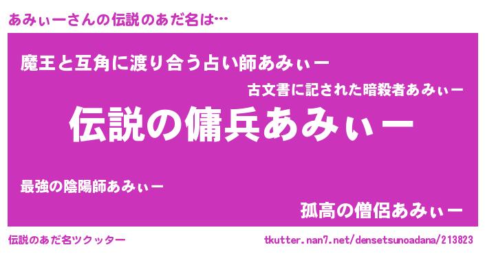 | ヒーロー風カッコイイあだ名 | 『スーパーアミィー』『愛の使者あみぃー』 |