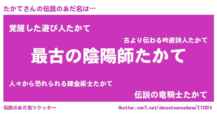 | 男性向けラノベタイトル風あだ名 | 『たかてに滅ぼされるだけの簡単なお仕事です』 |