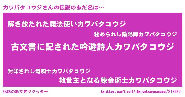 | 意味不明あだ名 | 『永久保存カワバタコウジ』 |