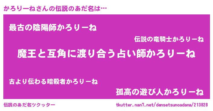 | ヒーロー風カッコイイあだ名 | 『愛の使者かろりーね』『仮面カロダー』 |