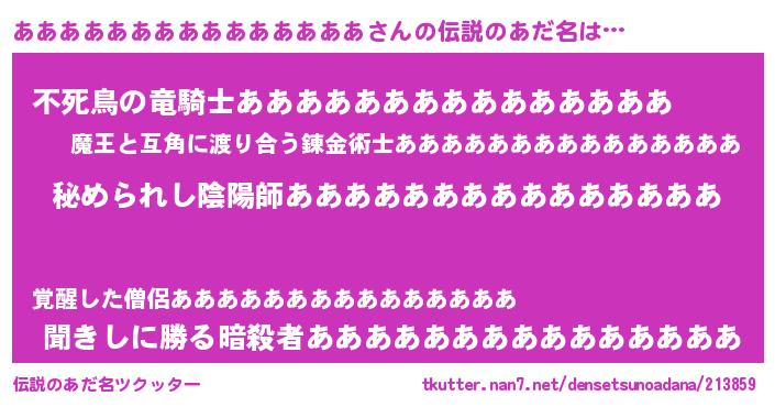 | 意味不明あだ名 | 『あああああああああああああああフォーエバー』 |