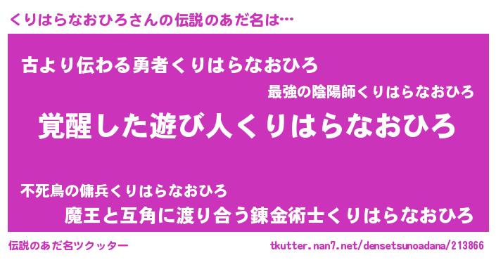 | 胡散臭い通販商品みたいなあだ名 | 『あなたにだけ特別に提供する世界で10本だけ現存している希少なブランデー…その名も「くりはらなおひろ」』 |
