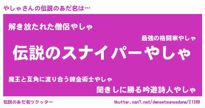 | 料理風あだ名 | 『やしゃごはん』『満腹やしゃマフィン』 |