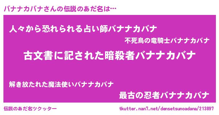 | 胡散臭い通販商品みたいなあだ名 | 『前代未聞の健康食品…その名も「バナナカバナ」』 |