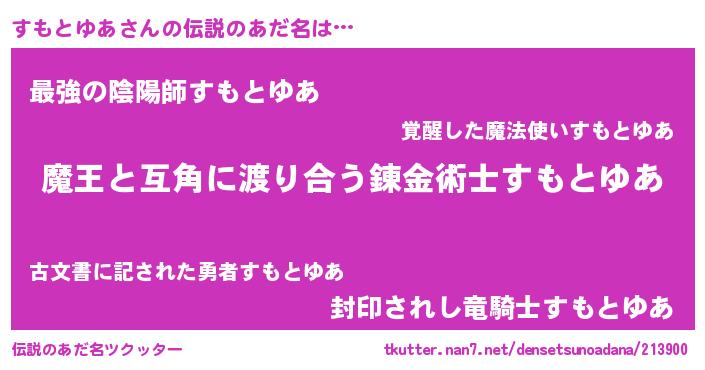 | 男性向けラノベタイトル風あだ名 | 『おまえをオタクにしてやるから、俺をすもとゆあにしてくれ! 』 |