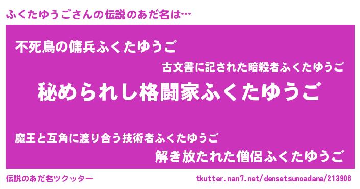 | 意味不明あだ名 | 『住所不定無職ふくたゆうご(8歳)』 |