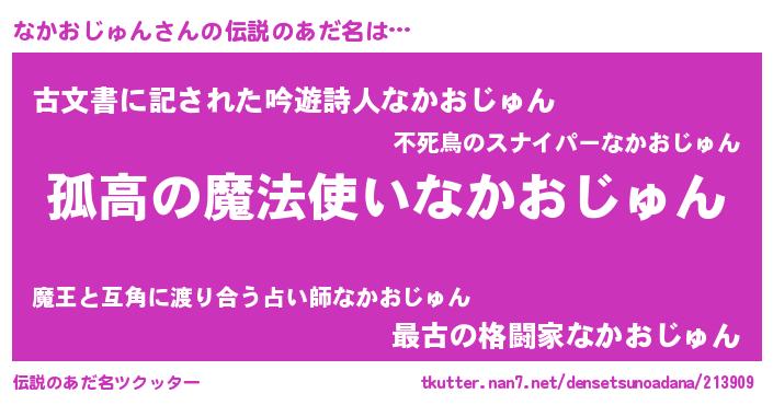 | 男性向けラノベタイトル風あだ名 | 『ダンジョンになかおじゅんを求めるのは間違っているだろうか』 |