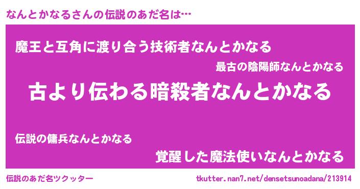 | ヒーロー風カッコイイあだ名 | 『仮面ナンダー』『ネオナントカナル』 |