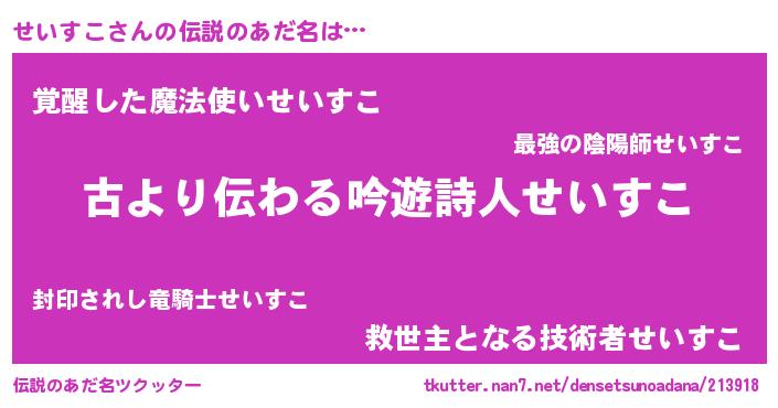 | ヘコむあだ名 | 『せいすこ(笑)』『せい太郎』 |