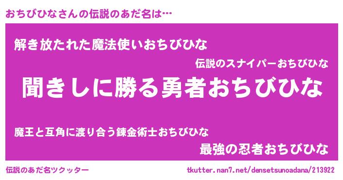 | 意味不明あだ名 | 『永久保存おちびひな』 |
