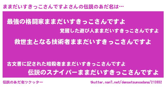 | ヒーロー風カッコイイあだ名 | 『天空の使者ままだいすきっこさんですよ』 |