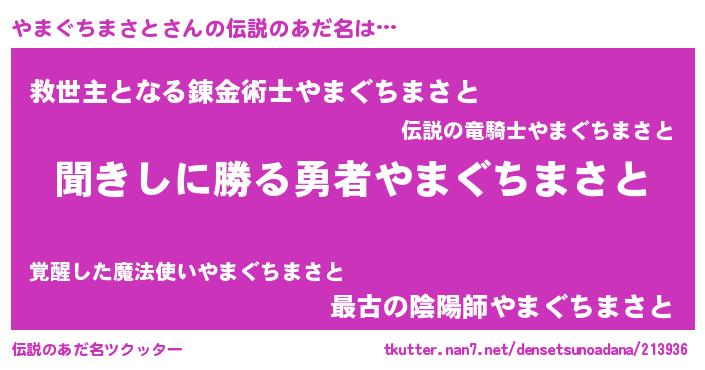 | 意味不明あだ名 | 『永久保存やまぐちまさと』 |