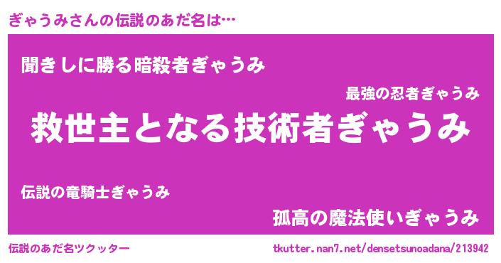 | ヒーロー風カッコイイあだ名 | 『天空の使者ぎゃうみ』『ネオギャウミ』 |