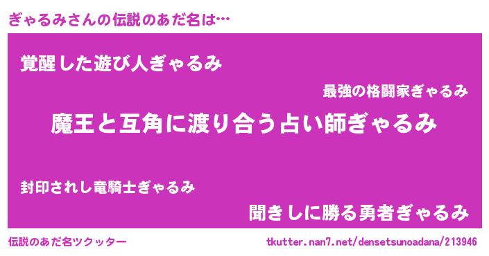 | 意味不明あだ名 | 『住所不定無職ぎゃるみ(39歳)』 |