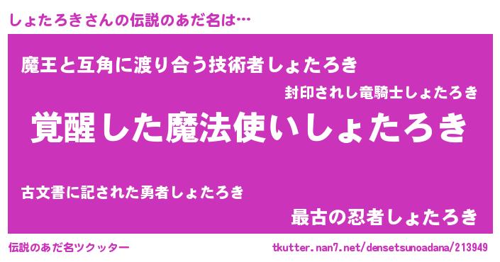 | 男性向けラノベタイトル風あだ名 | 『しょたろきに滅ぼされるだけの簡単なお仕事です』 |