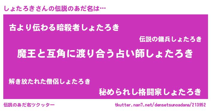 | ヒーロー風カッコイイあだ名 | 『仮面ショダー』『友情の使者しょたろき』 |