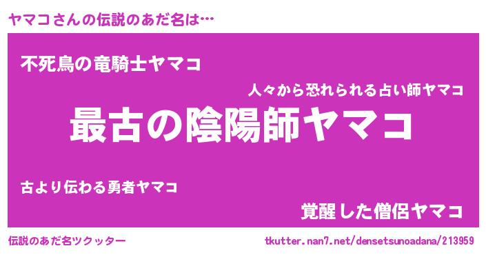 | ファンタジー風あだ名 | 『ゼヤマトゥ』『エターナルヤマコー』 |