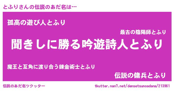 | 意味不明あだ名 | 『永久保存とふり』『自称とふり』 |