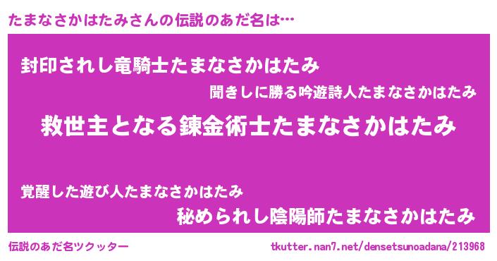 | 男性向けラノベタイトル風あだ名 | 『ノーゲーム・ノータマナサカハタミ』 |