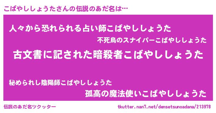 | ヘコむあだ名 | 『こばやししょうた(爆)』『こばっ子』 |