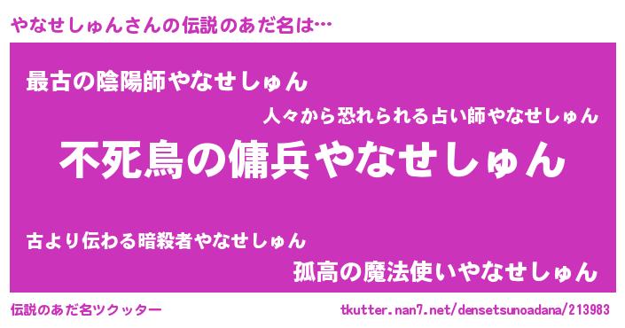 | 意味不明あだ名 | 『自称やなせしゅん』 |