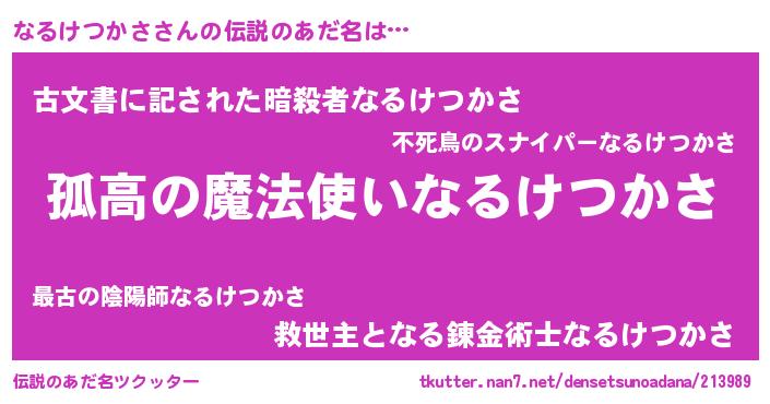 | 胡散臭い通販商品みたいなあだ名 | 『信頼と実績のサプリメント…その名も「なるけつかさ」』 |