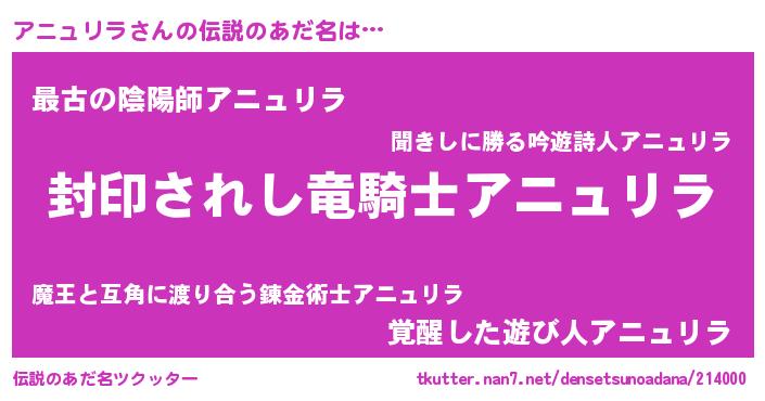 | 胡散臭い通販商品みたいなあだ名 | 『あなたにだけ特別に提供する100年もののヴィンテージワイン…その名も「アニュリラ」』 |