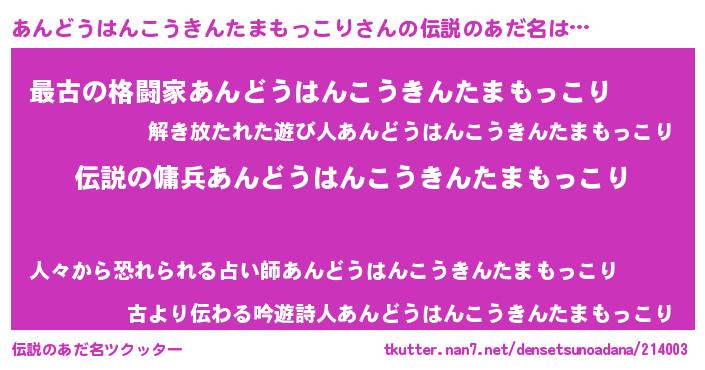 | ヘコむあだ名 | 『あんにゅー』『豆乳』『あん太郎』 |