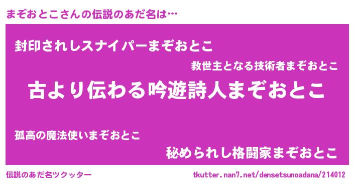 | 意味不明あだ名 | 『永久保存まぞおとこ』『自称まぞおとこ』 |