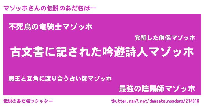 | ファンタジー風あだ名 | 『マゾディッシュ』『ゼマゾトゥ』 |
