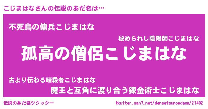 | 女子向けラノベタイトル風あだ名 | 『こじまはななんてお断りですっ。』 |