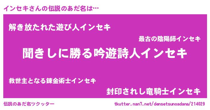 | ヘコむあだ名 | 『インセキ(笑)』『インっちょ』 |