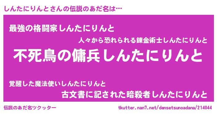| 意味不明あだ名 | 『住所不定無職しんたにりんと(14歳)』 |
