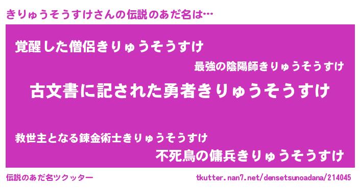 | 意味不明あだ名 | 『永久保存きりゅうそうすけ』 |