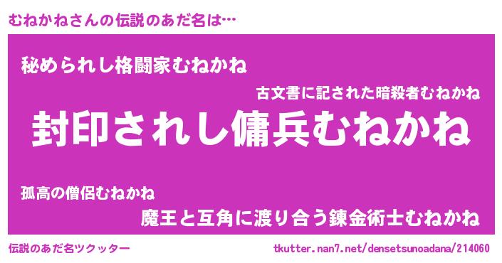 | 男性向けラノベタイトル風あだ名 | 『この素晴らしい世界にむねかねを!』 |