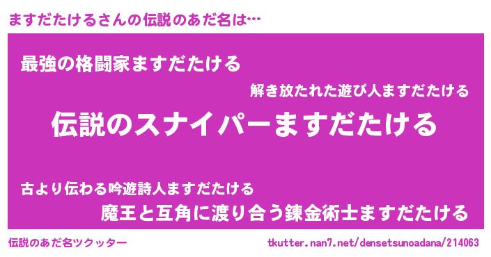 | 女子向けラノベタイトル風あだ名 | 『(仮)ますだたけるのやんごとなき事情』 |