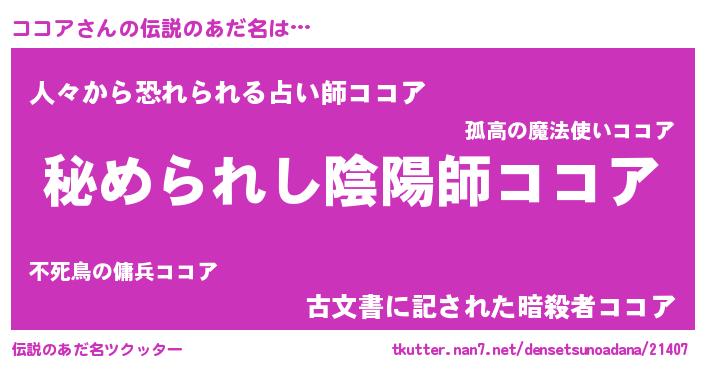 | ポケモン風あだ名 | 『ココアダネ』『ココゴンZ』 |