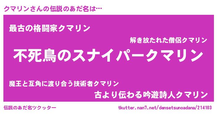 | ヒーロー風カッコイイあだ名 | 『スーパークマリン』『ネオクマリン』 |