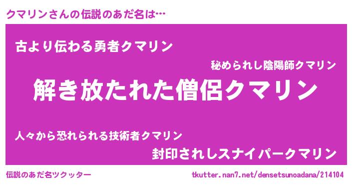 | 意味不明あだ名 | 『とにかく怪しいクマリン』 |