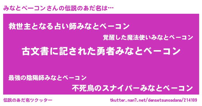 | ヒーロー風カッコイイあだ名 | 『ネオミナトベーコン』『仮面ミナダー』 |