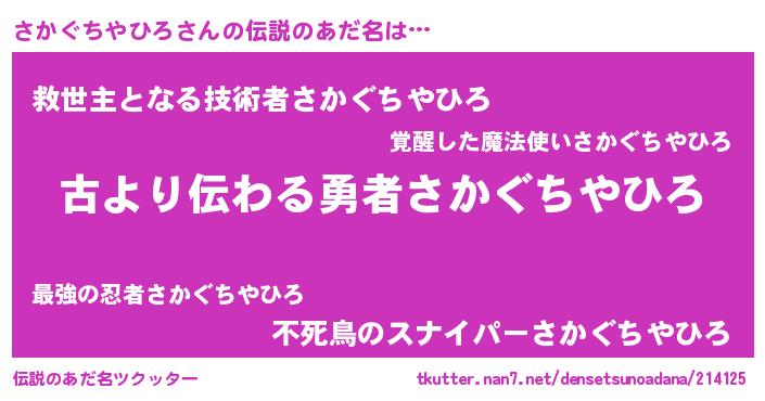 | ヒーロー風カッコイイあだ名 | 『サイバー戦士サカグチヤヒロ』 |