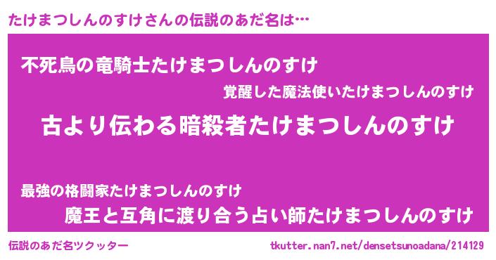 | 意味不明あだ名 | 『自称たけまつしんのすけ』 |