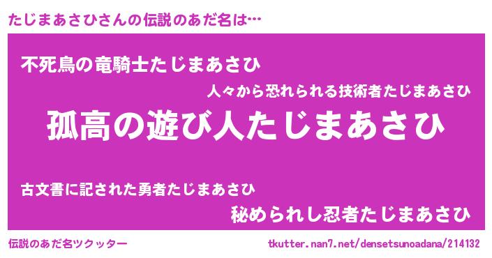 | 意味不明あだ名 | 『とにかく怪しいたじまあさひ』 |
