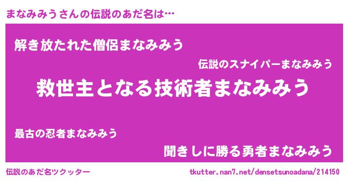 | 欧米人風あだ名 | 『アンジェラ・まなみみう』 |