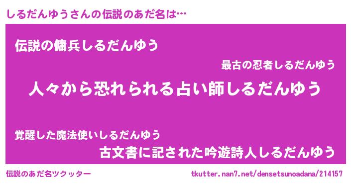 | 女子向けラノベタイトル風あだ名 | 『しるだんゆうなんてお断りですっ。』 |