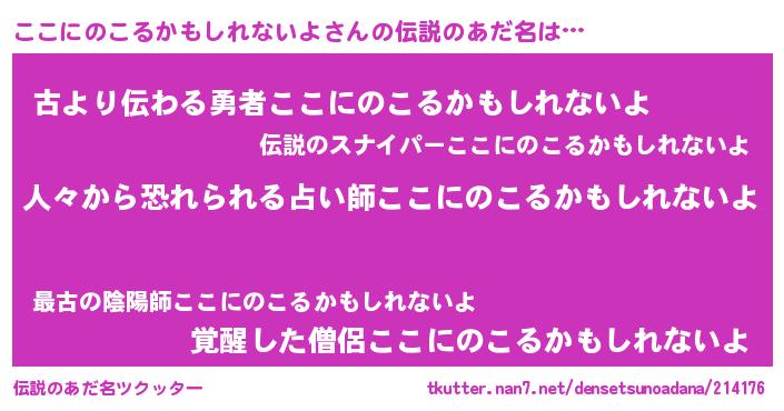 | ヒーロー風カッコイイあだ名 | 『友情の使者ここにのこるかもしれないよ』 |