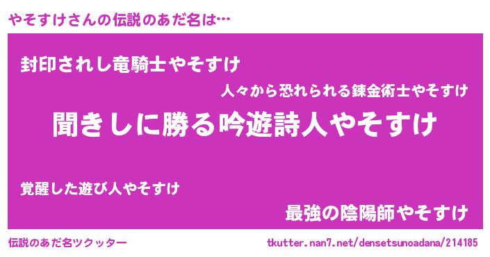 | 意味不明あだ名 | 『永久保存やそすけ』『ペロリンやそすけ』 |